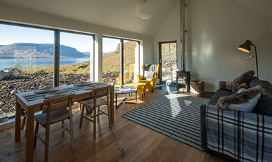 a sea loch in the North West Highlands of Scotland. It has a modern kitchen, dishwasher, log burning stove, bath and shower and is warm and cosy.